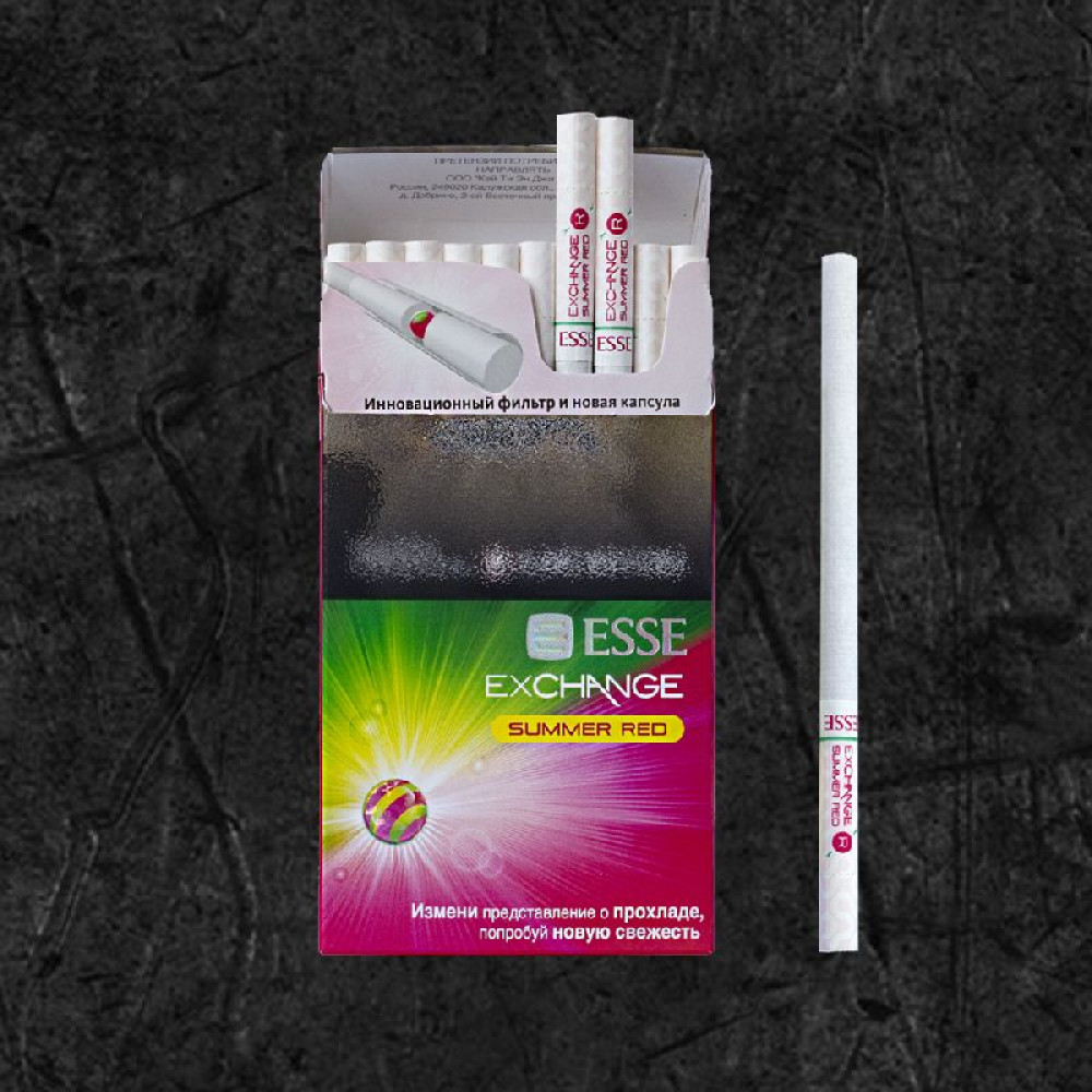 Сигареты Эссе Эксченж Арбуз (Esse Exchange Summer Red) — это выбор тех, кто предпочитает легкость и утонченность в каждом аспекте своей жизни. Наслаждайтесь каждой затяжкой с Esse, где качество встречается с изысканностью.
